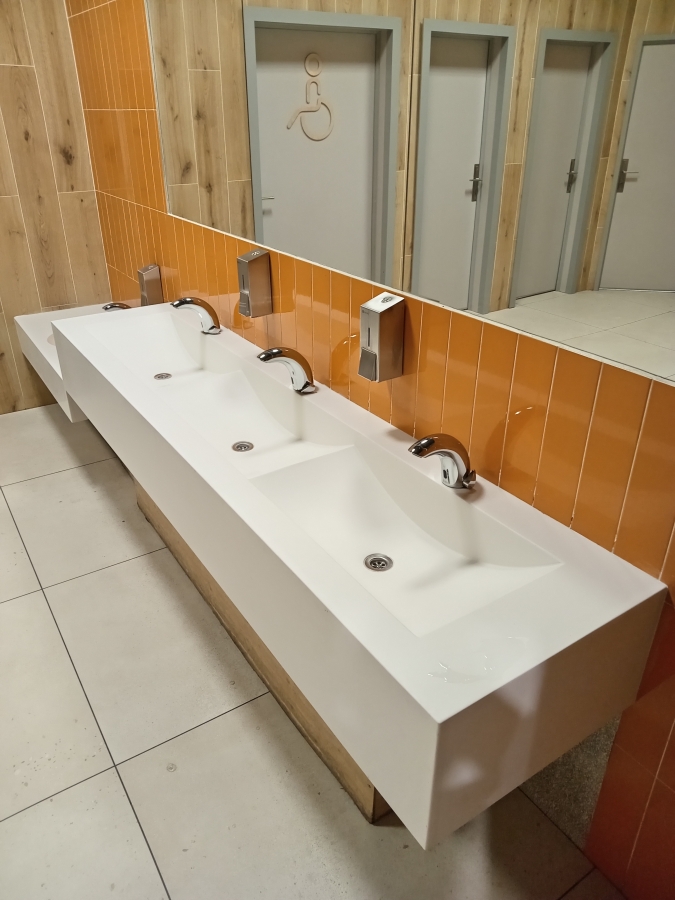 Изготовим большие умывальники из искусственного камня для торговых центров.